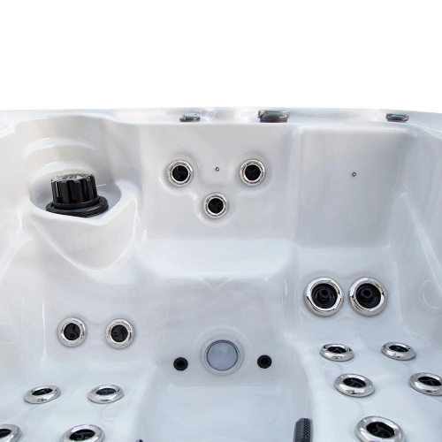 Прочная спа-крышка обеспечивает сохранение тепла и безопасность, а прозрачный поручень из пищевого пластика добавляет удобства при использовании.